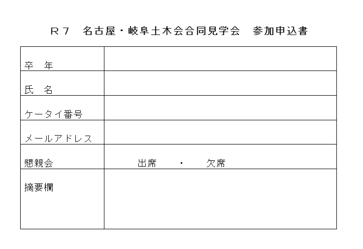 毎年恒例となっております岐阜大学名古屋・岐阜土木会合同見学会の開催案内です。